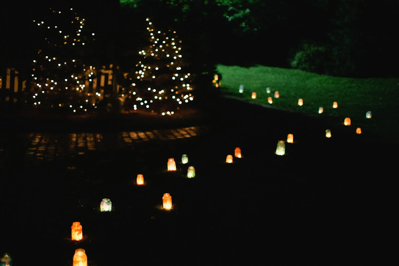 It's unhelpful to say things like "the decorations don't matter" because my mom, bald and one-handed and battling cancer, papier-mâchéd bright tissue paper onto four dozen jars of pasta sauce and pickles we had collected. And they were almost missed but my Aunt Pam noticed they weren't out at the wedding, went to find them, set them up and made the dream happen. Glowing jars themselves don't *really* matter, but my mom and my aunt do. And the only reason those silly jars mattered to them was because I mattered to them. So there in the grass, lit up by fire, was a display of love for me. There in the grass, as we ran out of our wedding, were our people -- mom and Aunt Pam included -- cheering and shouting love for me, for us. Every thing is brought, or made, or paid for by a human soul on a wedding day, and that matters.
